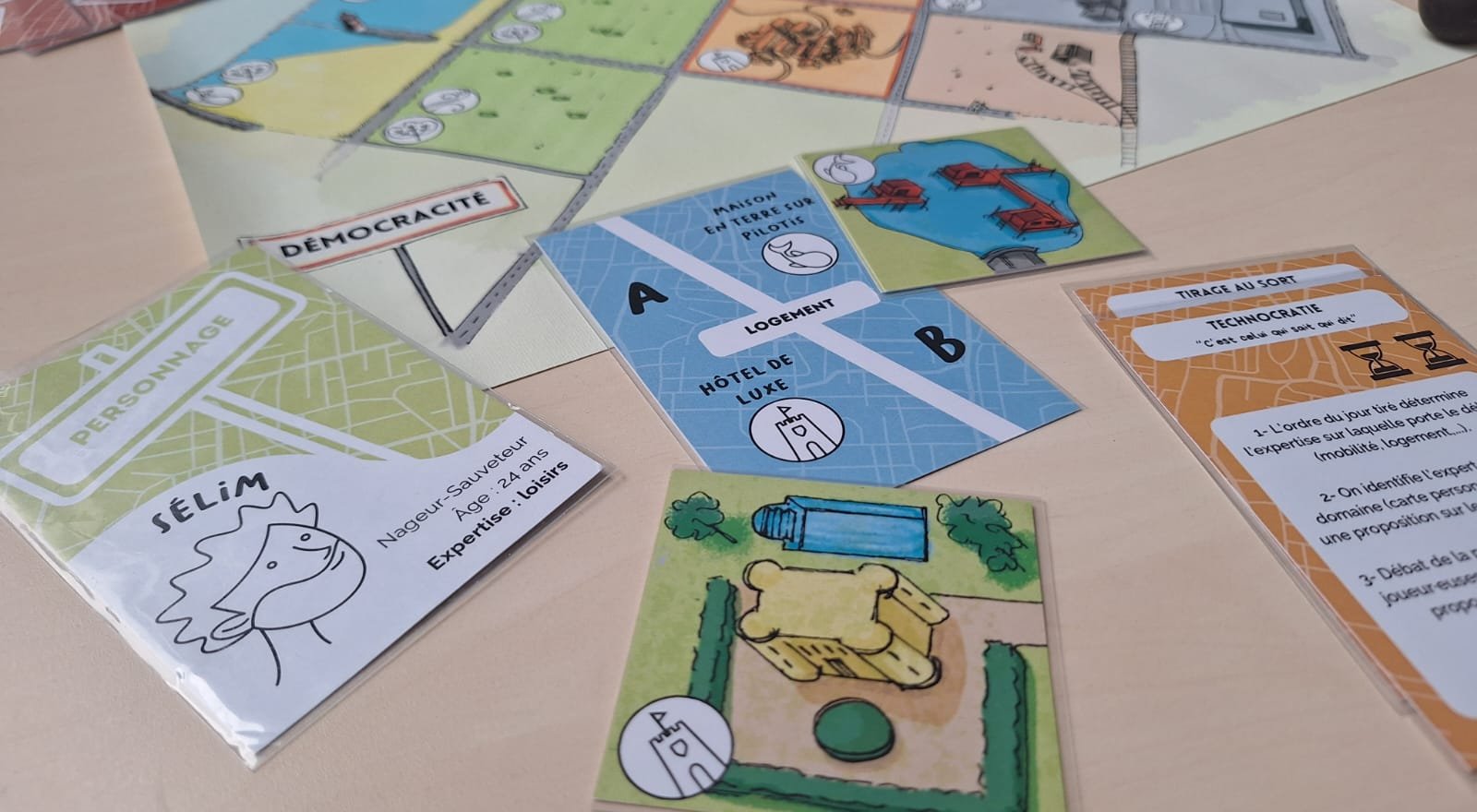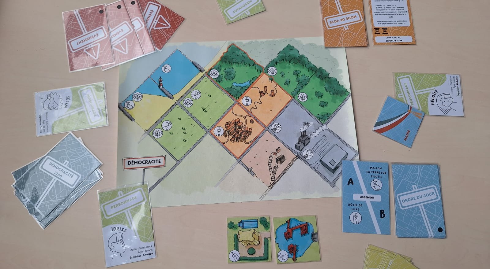 Démocracité est un jeu de rôle compétitif. Il propose aux joueur.euses de se mettre dans la peau d’un·e habitant·e de la commune de Démocracité pour mener plusieurs débats sur la transformation de son territoire.